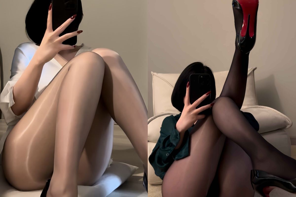 她的脚上穿着一双黑色的低跟鞋,舒适又适合长时间站立或走动。她的头发被优雅地盘在头顶,展现了她的干练。一款简约的手提包衬托出她的商务气质,整体造型虽然保守,但每一处细节都透露着品味和自信。